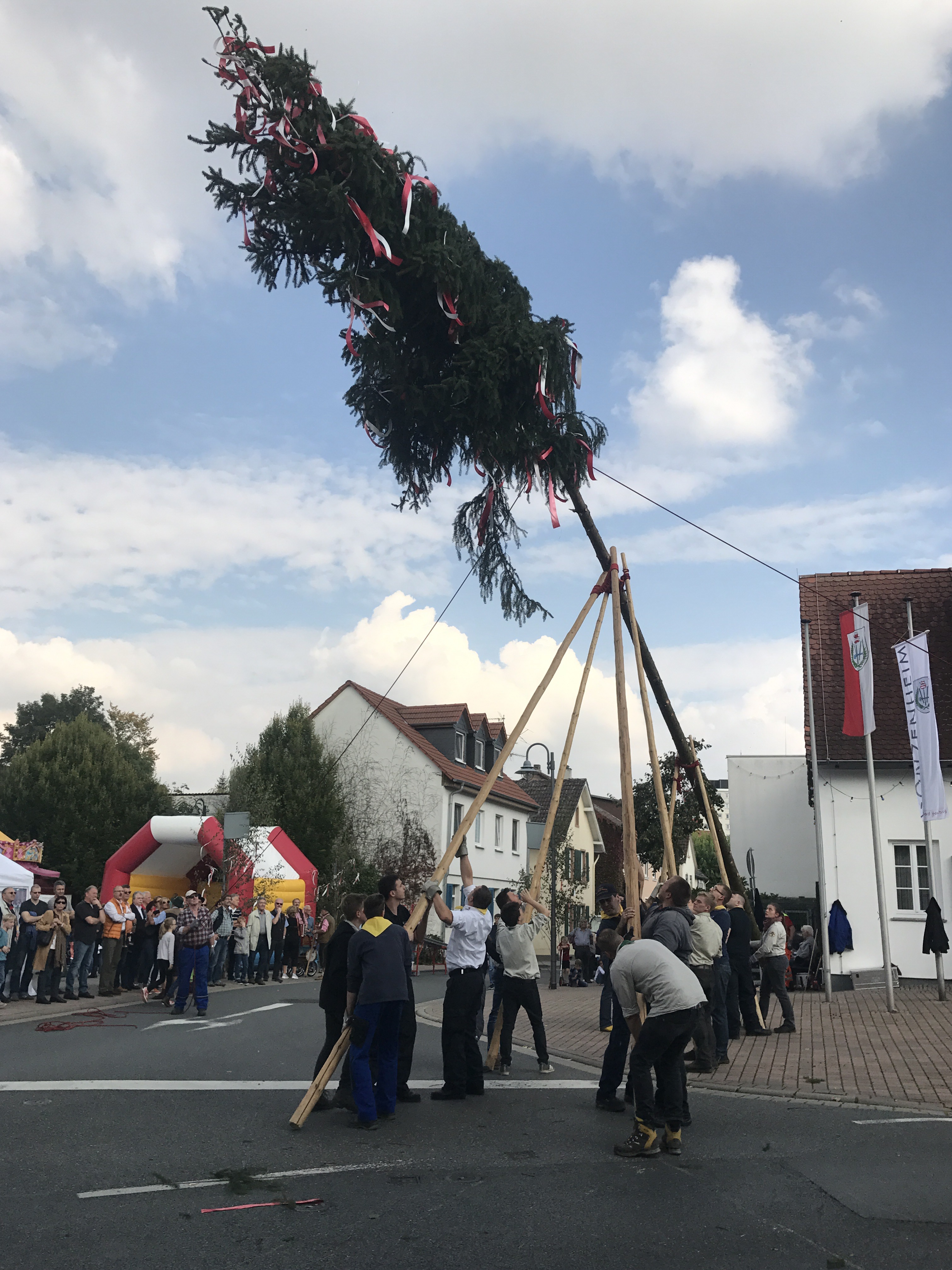 Am Nachmittag wurde der dann mit vereinten Kräften aufgestellt.