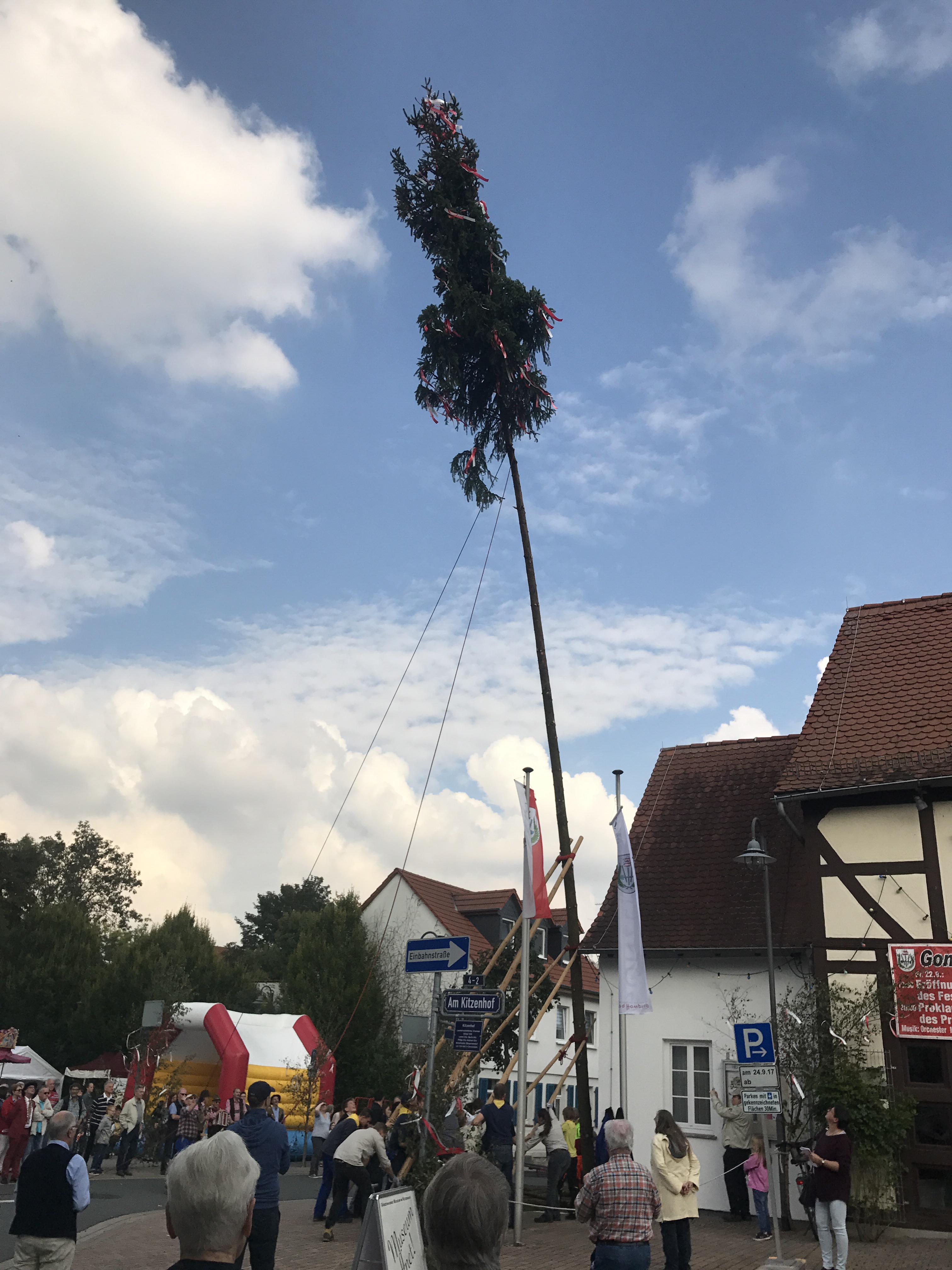 Am Nachmittag wurde der dann mit vereinten Kräften aufgestellt.