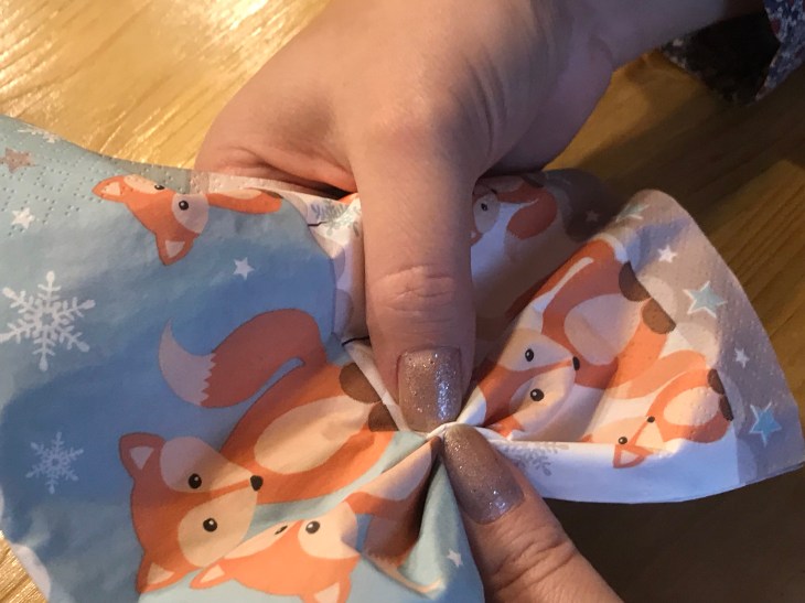Jetzt die Serviette in der Mitte in Falten legen.