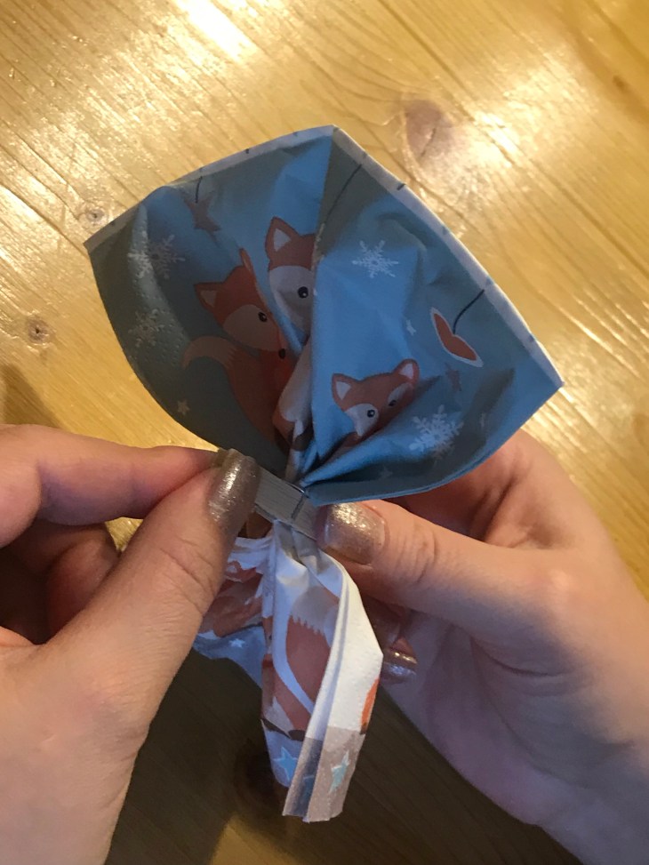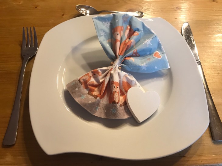 1. Wir finden die Falttechnik super. Normalerweise falten wir immer Bestecktaschen aber diese Idee ist genauso schnell und einfach umsetzbar. Sie eignet sich anscheinend auch für kleine Servietten.