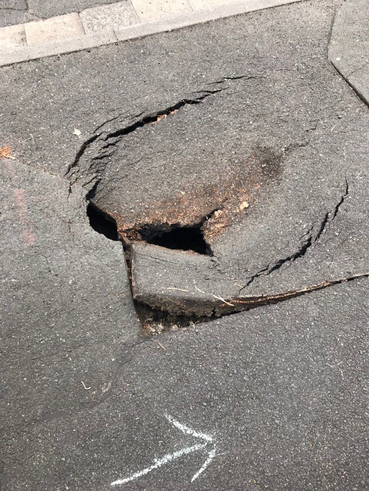 Bei der Sonntagstour haben wir dann auch noch dieses Loch auf dem Bürgersteig entdeckt und vorsichtshalber gemeldet.