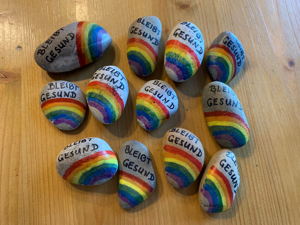 Irgendwie wollte ich meiner Familie und den Freunden eine kleine Freude machen und in der schweren Zeit etwas Mut. Deshalb habe ich mich hingesetzt und habe Steine bemalt und sie dann an Freunde und Familie verteilt. Die Empfänger haben sich alle sehr über die kleine Überraschung gefreut und waren ganz gerührt.