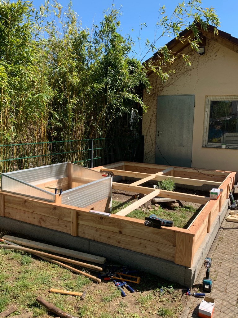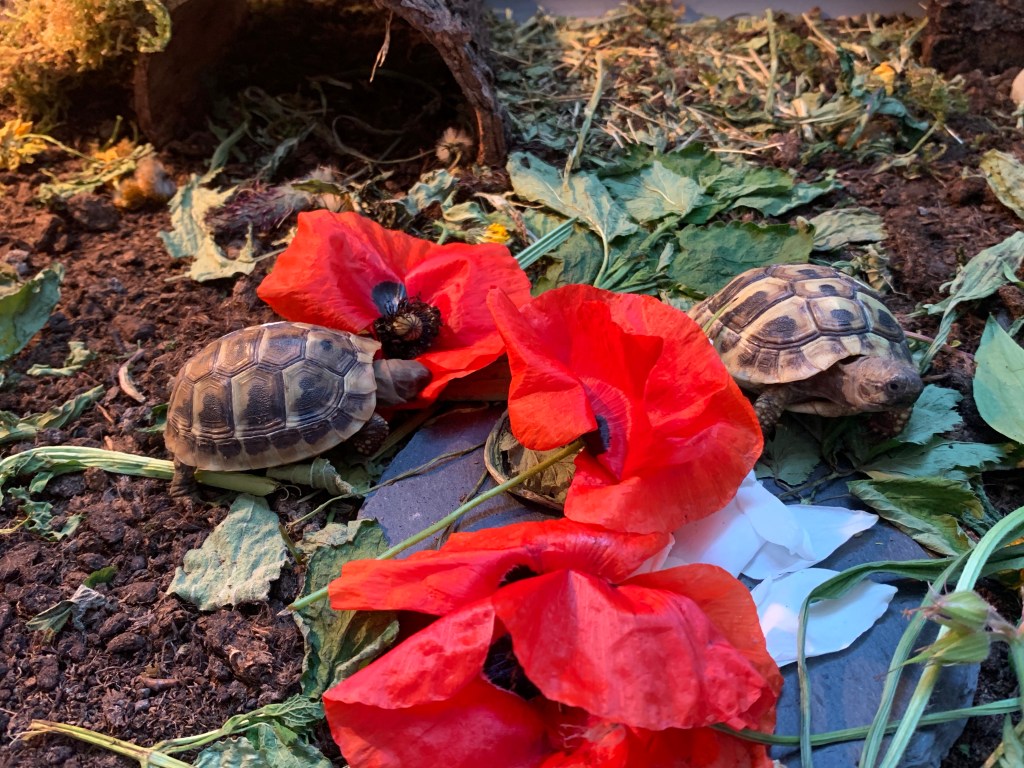Da wir die meiste Zeit zu Hause verbracht haben, hatten wir viel Zeit um den Schildis ein Außengehege mit Frühbeet zu bauen. Jeden Tag sammeln wir bei der Gassirunde frische Kräuter und freuen uns über unsere neuen Minidinos.