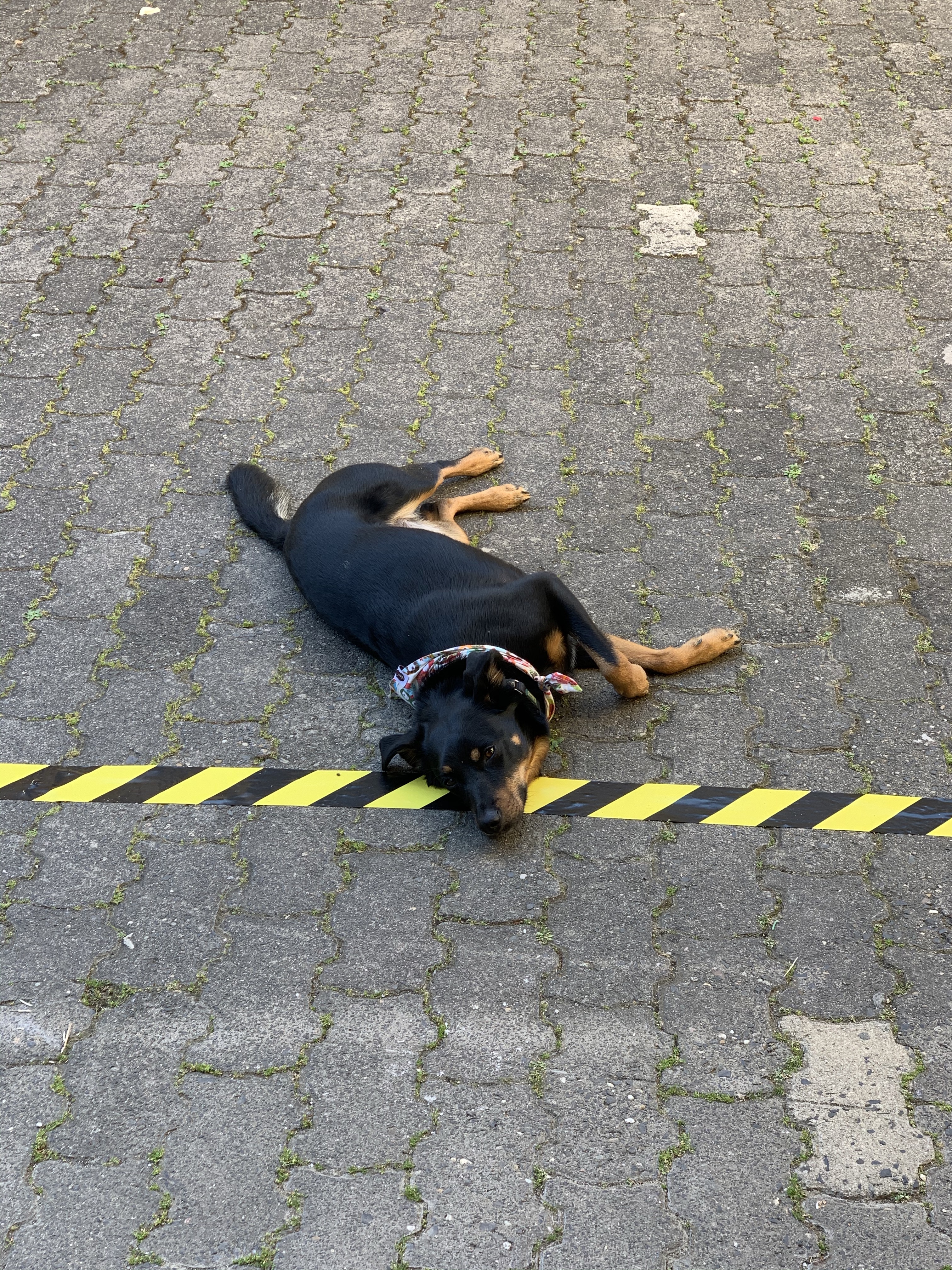 Dank unserem Hund halten bei Spaziergängen andere Menschen zum Glück sowieso schon Abstand und unsere Fellnase hat die Abstandsregel, wie auf dem Foto zu sehen ist, schon ganz gut verstanden. 😉